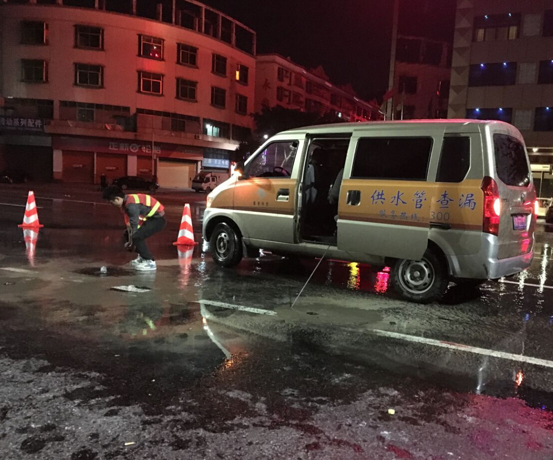 該處漏點(diǎn)位置管線埋深3米,查漏難度非常大,順德水業(yè)曾開(kāi)挖兩次但都未成功找到準(zhǔn)確的漏水位置。在接到順德水業(yè)的支援請(qǐng)求,我司馬上派出了搶險(xiǎn)工程車以及查漏隊(duì)伍直接到現(xiàn)場(chǎng)進(jìn)行勘察,經(jīng)過(guò)兩夜努力,完成了精確定點(diǎn),為開(kāi)挖搶修提供精確位置,保證順德水業(yè)能夠順利地開(kāi)展維修工作,保證了春節(jié)前能夠正常供水、春運(yùn)期間道路暢通。我司查漏隊(duì)伍的工作態(tài)度以及專業(yè)水平得到順德水業(yè)的一致認(rèn)可。