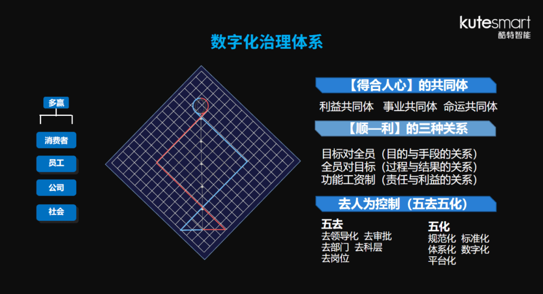 2022.06.30“最好的管理,是不需要管理?!惫灸軌蜃龅焦芾碚咴谂c不在都能正常運轉(zhuǎn),看似“無為”卻“有為”的數(shù)字化治理體系,隨著全價值鏈的數(shù)字化改造完成,在酷特智能成為了現(xiàn)實。