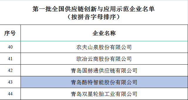 7月13日,商務(wù)部等8部委聯(lián)合公布了第一批10個(gè)全國供應(yīng)鏈創(chuàng)新與應(yīng)用示范城市和94家示范企業(yè)名單。其中,青島入選全國第一批供應(yīng)鏈創(chuàng)新與應(yīng)用示范城市,酷特智能入選示范企業(yè)。