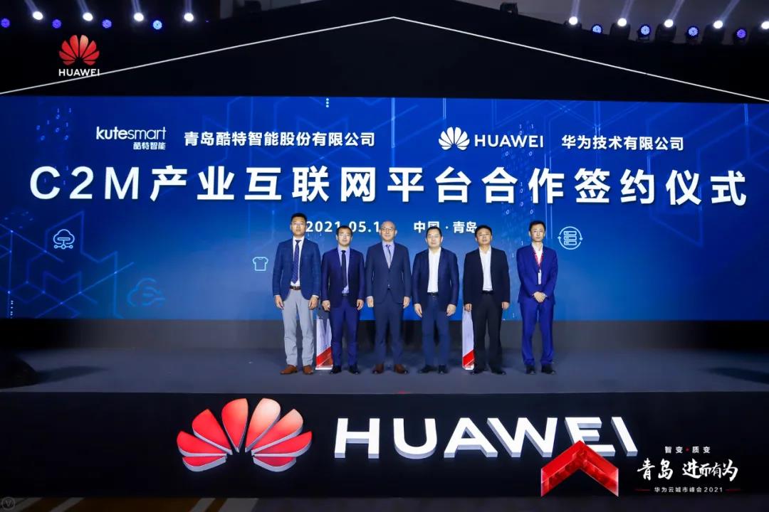△ 2021年 5月13日,在“青島·進(jìn)而有為華為云城市峰會(huì)2021”上,酷特智能與華為云就C2M產(chǎn)業(yè)互聯(lián)網(wǎng)平臺(tái)解決方案合作進(jìn)行簽約,雙方將共同打造國(guó)內(nèi)一流的C2M產(chǎn)業(yè)互聯(lián)網(wǎng)平臺(tái)解決方案。