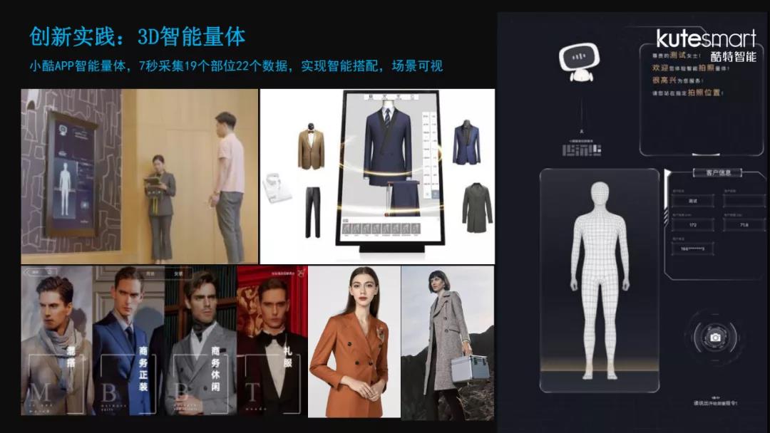 “我們自主研發(fā)了專(zhuān)利量體工具和量體方法——小酷APP定制交互系統(tǒng)實(shí)現(xiàn)AI智能量體,可克服傳統(tǒng)服裝定制模式中老裁縫打版、量體的時(shí)間周期長(zhǎng)、效率低的缺陷?!睆?zhí)N藍(lán)透露。在實(shí)際操作中,當(dāng)客戶(hù)不方便現(xiàn)場(chǎng)量體時(shí),就可以通過(guò)“紅領(lǐng)REDCOLLAR”微信小程序中的“易拍量體”功能,只需拍攝一張正面照和一張側(cè)面照,再將2張照片上傳至系統(tǒng),即可解鎖人體密碼,獲取全身19個(gè)部位的22個(gè)身體數(shù)據(jù),輕松實(shí)現(xiàn)自主量體下單,重塑了購(gòu)物模式。