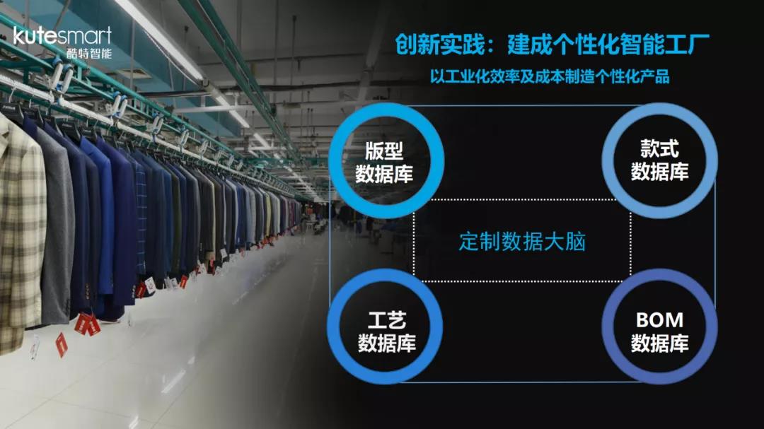 在張?zhí)N藍(lán)看來(lái),酷特智能最核心的競(jìng)爭(zhēng)力是大數(shù)據(jù)。通過(guò)自主研發(fā)建立了版型、工藝、款式、BOM四大數(shù)據(jù)庫(kù),這是酷特智能的“定制數(shù)據(jù)大腦”,包含了百萬(wàn)萬(wàn)億量級(jí)的數(shù)據(jù),可以滿(mǎn)足99.99%的人體個(gè)性化定制需要。解決了傳統(tǒng)制版離不開(kāi)制版師的問(wèn)題,款式數(shù)據(jù)庫(kù)中納入了市面上可以見(jiàn)到的各種款式,它們與工藝數(shù)據(jù)庫(kù)和BOM數(shù)據(jù)庫(kù)一起,提供了全生命周期的解決方案。