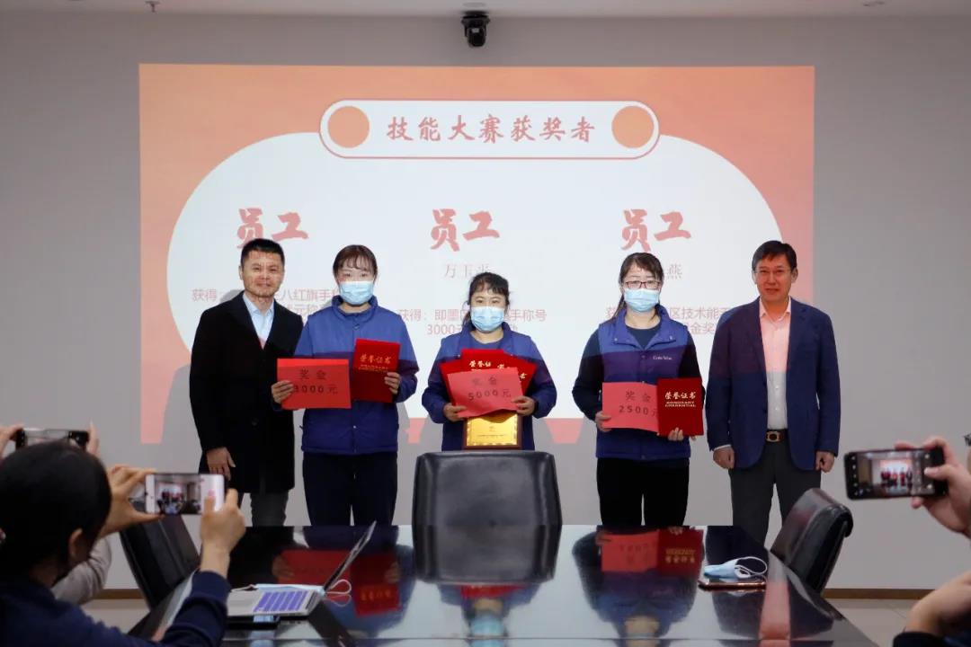 即墨區(qū)第六屆職業(yè)技能大賽獲獎(jiǎng)員工及2021年度優(yōu)秀員工合影