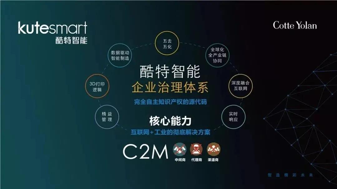 酷特智能以“踐行科學(xué)的企業(yè)治理思想,創(chuàng)造全新的價(jià)值體系”為使命,專注研究實(shí)踐“互聯(lián)網(wǎng)+工業(yè)”,形成了以“大規(guī)模個(gè)性化定制”為核心的酷特智能模式,完成了從傳統(tǒng)的成衣工廠到數(shù)據(jù)驅(qū)動(dòng)生產(chǎn)全流程,以工業(yè)化手段、效率及成本制造個(gè)性化產(chǎn)品的智能工廠的轉(zhuǎn)型。C2M工商一體化的商業(yè)模式的創(chuàng)新應(yīng)用,讓C端需求直達(dá)M端工廠,滿足群眾消費(fèi)升級和社會(huì)發(fā)展需要,讓個(gè)性化定制走進(jìn)生活!