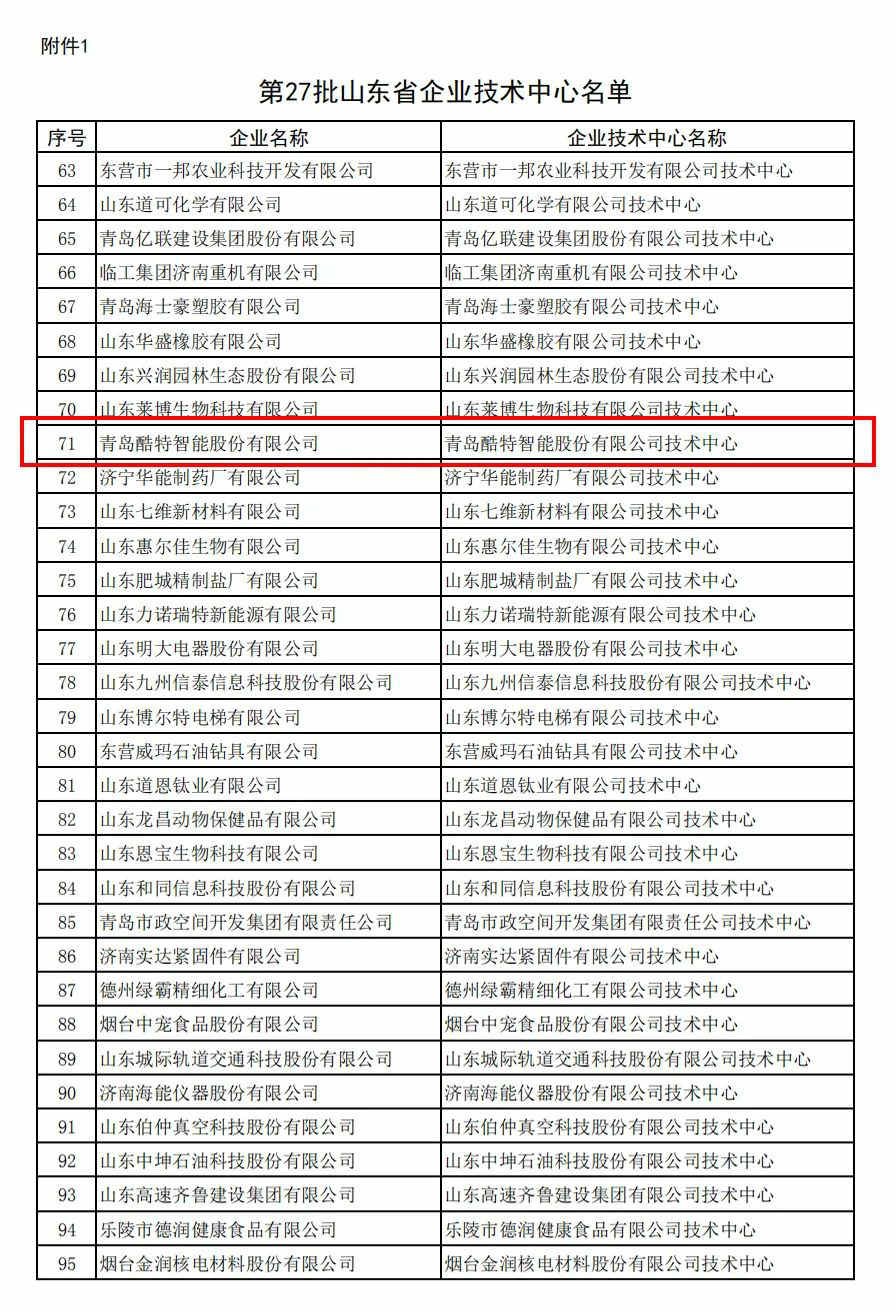 ↑ 來源《第27批山東省企業(yè)技術中心名單》