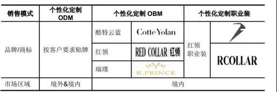 在大規(guī)模個(gè)性化定制的C2M生產(chǎn)模式下,酷特智能形成了包括個(gè)性化定制ODM、個(gè)性化定制 OBM、個(gè)性化定制職業(yè)裝三種銷售模式。對(duì)于境內(nèi)外的B端客戶,公司以貼牌方式進(jìn)行生產(chǎn);對(duì)于境內(nèi)的C端客戶以及職業(yè)裝團(tuán)體訂單客戶,公司以自有品牌進(jìn)行生產(chǎn)銷售。