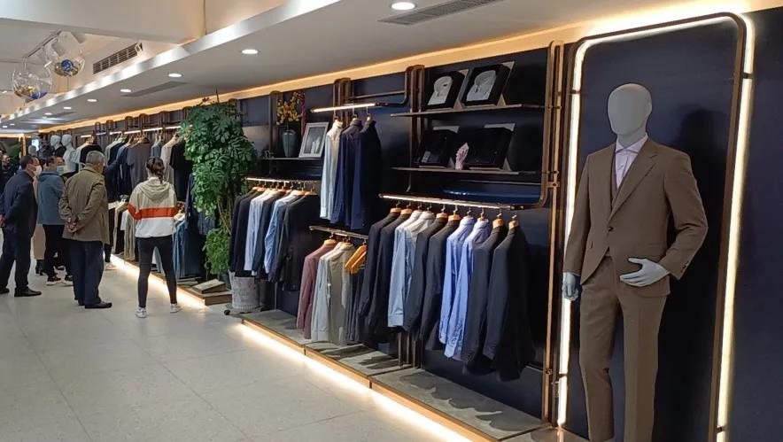 開業(yè)當(dāng)天,門店人頭攢動,新老顧客爭先前來祝賀與體驗。紅領(lǐng)品牌總經(jīng)理萬俊杰進行開幕致辭,對紅領(lǐng)品牌進行介紹,并祝愿紅領(lǐng)萊西店蒸蒸日上,推動萊西市時尚定制快速發(fā)展。